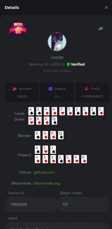 Betting ID: 4689516 (14 cards) https://bcgame-project.github.io/bcgame-blackjack/?s=YYOvj4oS%2FeLYG4tUhexnTsvIoj3ZEmAdggATvQi9Z3YEncIAbhfpyw1Q5kfB3njzOp55Ni9I53TONExCvl8Wh8sPK5PjDKpUcmtf2JWeGgrek38pxp1XVxuyB7PIq6%2FEMZh6qgLVUNZYTS3eZPcOUC0U2rc1YLWPBsSgP57nZMQ%3D&i=222768&range=127,141 ____________________________________________________________________________________________________ Betting ID: 4615658 (14 cards) https://bcgame-project.github.io/bcgame-blackjack/?s=lICcvpFFS9u%2BNgYd5yue6RN3tDUpgPdRnwerVoLeM06H8yTxmw5vvpXVpdzF7RjT%2Fh5MXTEwrdzl7CyC6rZ3y0Spf3mJ%2FlsPQqoRd2MT1NAct4FGI9H31aOGI0Lx85Wi70N4TYe1pS0Jrhyf5O8a%2B6uoNl67dsEY8z%2FTCYq9%2Bjw%3D&i=221653&range=237,251 Adding another entry cus im not sure if its eligible, however the bet is 1.25x and so it is a win technically. @digitaldash any further information about various payouts would be great, cus in BJ with insurance, splits etc the payouts could vary. ____________________________________________________________________________________________________ MASTER BONUS COMPLETED Betting ID: 4661357 (Player - 2,3,4,5,6) https://bcgame-project.github.io/bcgame-blackjack/?s=R6TLzK7mddp59iehua2Mu8Ey26Pv7MvpHXJUciGx1okbhSFQ3ZGYvJz0f%2FSQX0jxEQAWELPpD1Dgb2o7dYaEYikuSudEDMkptn0kboQoXyBQh2872kY7Z5QurjcR0tb6UKn8zfSwqeMQWZtysIwhrx1z955mrBYZDKZ3XfjCBZU%3D&i=222338&range=163,172